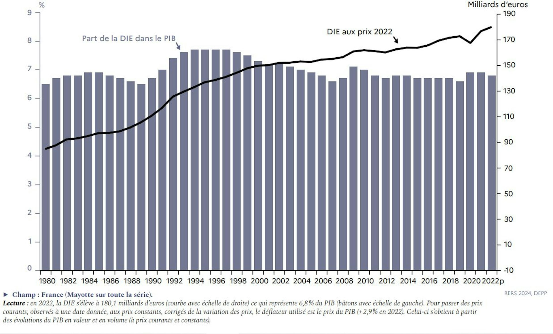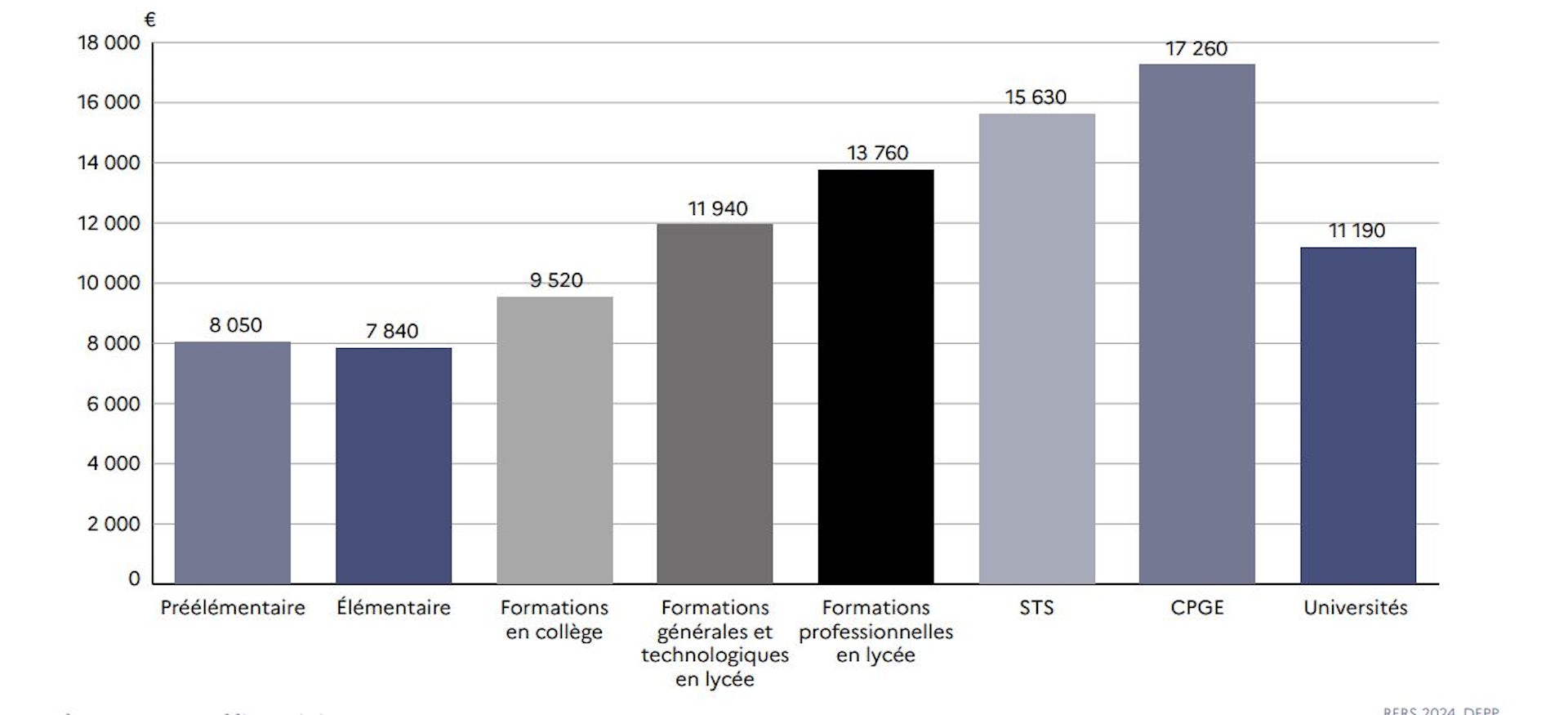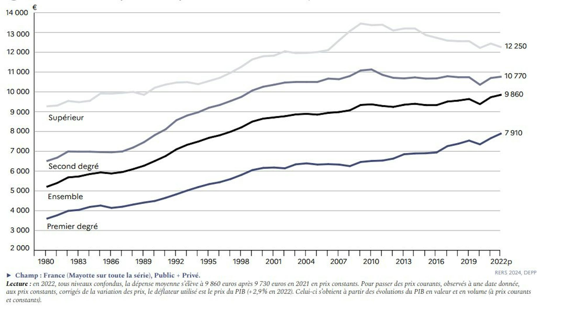 On a assisté à une augmentation moyenne de 1,5 % par an en prix constants tous niveaux confondus de la dépense moyenne par élève ou étudiant depuis 1980.