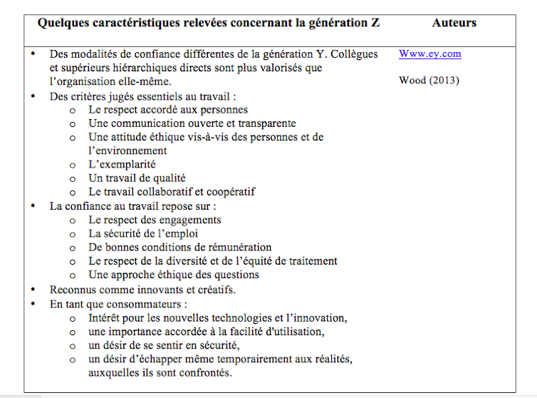 Qu’en est-il pour la génération Z ? La question se pose avec acuité, et elle restera en suspens encore quelques années, faute de données tangibles. Les études relatives à la génération Z sont en effet peu nombreuses et souvent difficilement comparables, du fait de la disparité des cadres d’analyse et des outils de mesure utilisés. Les analystes considèrent de manière assez marquée que soit ces valeurs n’ont pas d’influence réelle et significative sur l’intégration en entreprise, ou que celles-ci restent essentielles à redécouvrir, afin de mieux aborder les jeunes générations.