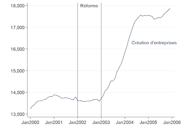 La création d’entreprises a augmenté de 25 % après la réforme, passant de 14 000 à 18 000 nouvelles entreprises par mois.